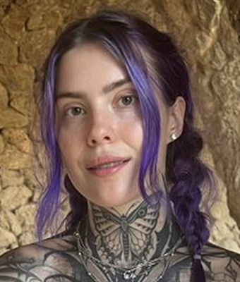 | Tattoos Left and right arm sleeves; butterfly on throat; upper chest/shoulders | Piercings Left and right nipples | Gender Woman |